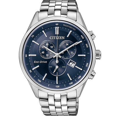 不锈钢表带搭配深蓝色的表盘设计,外观沉稳大气,尽显男士魅力。采用流线型设计的双按式三折扣,提升了佩戴舒适感。