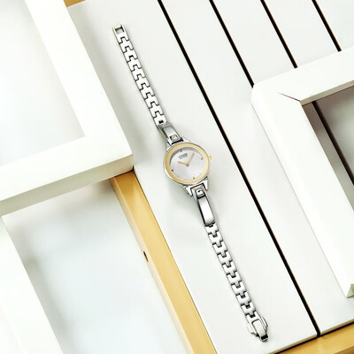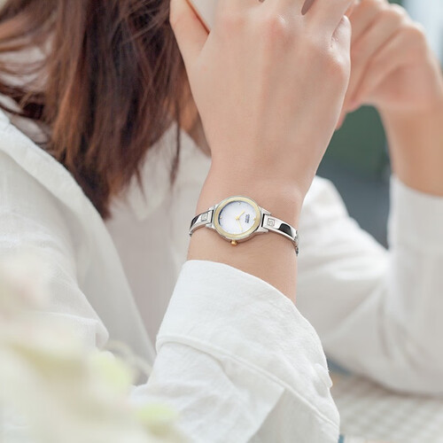 白色贝母表盘,搭配金色表圈,演绎出简约精致的商务风格。搭载光动能机芯,接触光源就能随时充电,节能又环保。