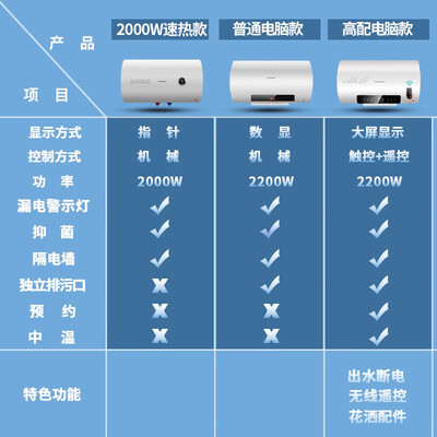 加厚搪瓷内胆,经久耐用,而且沐浴更加健康安全。采用下潜式的加热方式,增加与冷水的接触面积,更能加快加热速度。