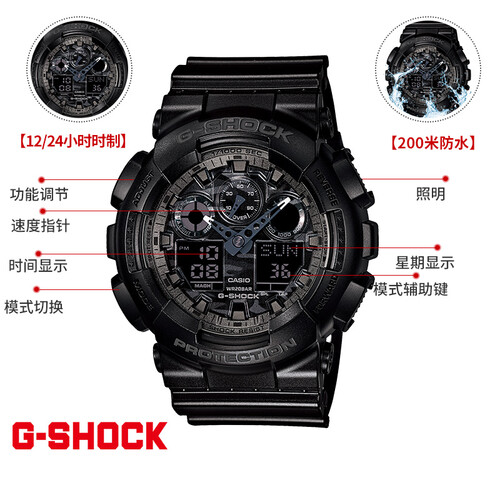 手表采用防震构造,加上机芯悬浮设计,保护按钮和表盘受到撞击损伤。200米的防水深度设计,避免受雨水侵袭。
