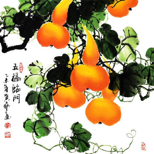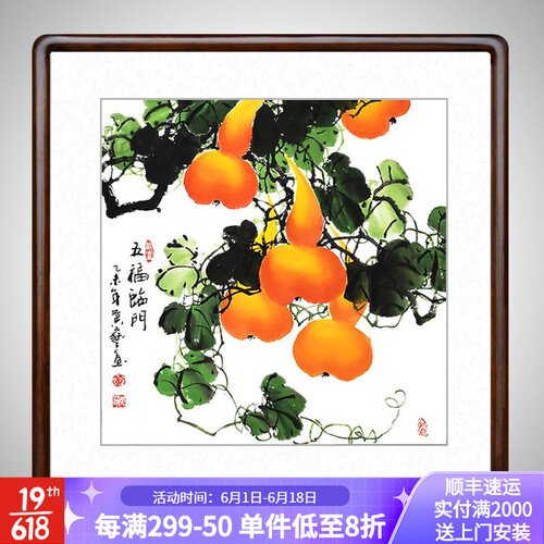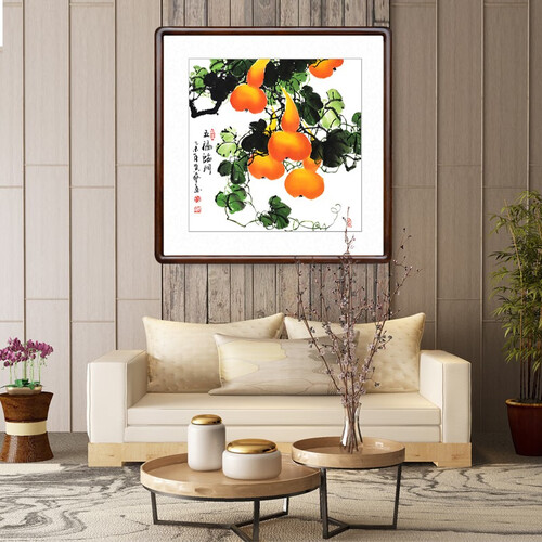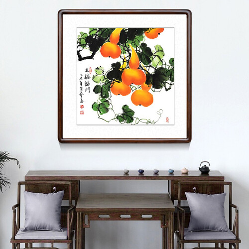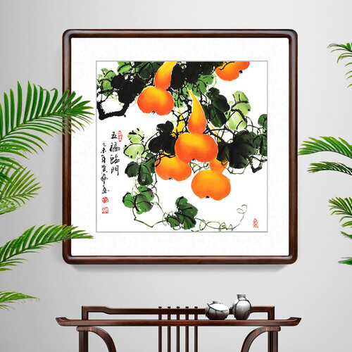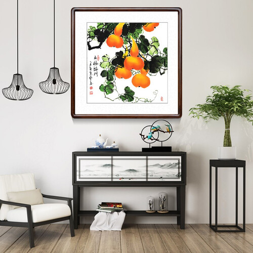 搭载金色葫芦图案,具有健康长寿,富贵一生的寓意。配以宣纸画芯,将画面呈现的更真实,防腐防虫蛀。