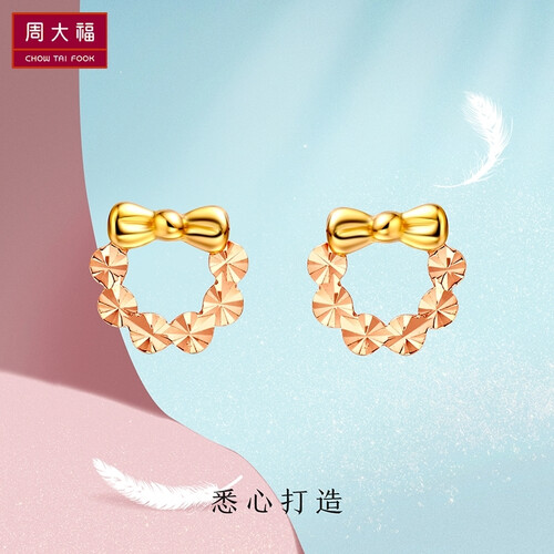 周大福 可爱蝴蝶结耳饰