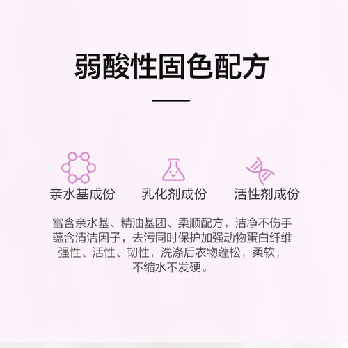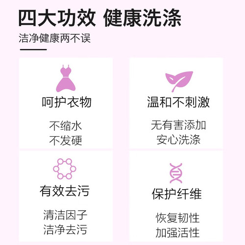 能有效的去除衣物上的污渍,还能有效的防止衣物缩水。本产品不含有荧光剂,中性配方温和不刺激。不含有害物质,安全环保。