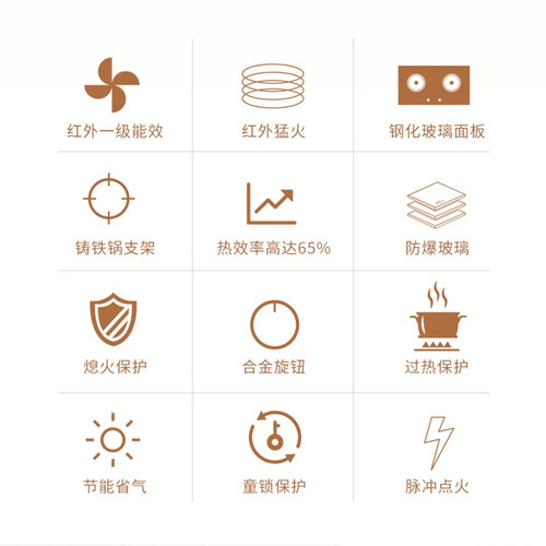 内置微电脑温度传感器,当温度过高时会自动熄火;配合一级能效,既节能又省电,满足多种使用需求。