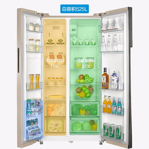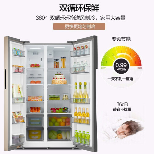 该冰箱采用创新双变频系统,可通过自动调节压缩机的工作,实现恒温保鲜、超强冷冻力,同时带来节能静音的舒适体验。