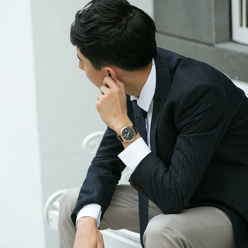 手表表盘内除了刻度,指针,日历窗以及LOGO图案之外,没有多余设计,显得十分简约有型,再加上黑金的配色,更彰显魅力。