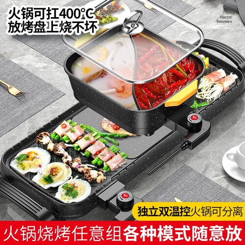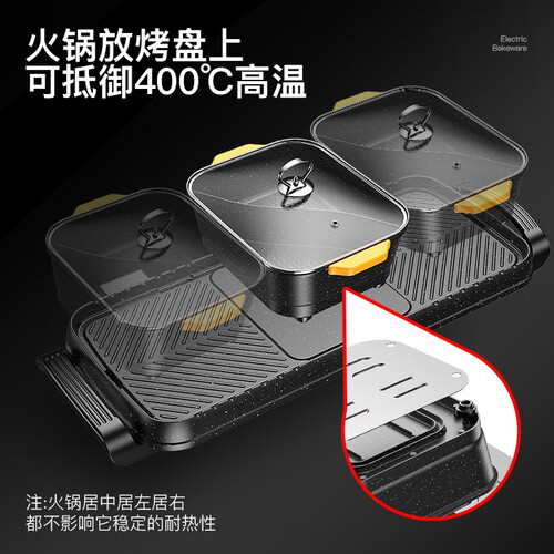 智能多段控温,烹饪更给力,针式打火头和炉头,丁烷气燃气,安全又环保,韩式麦饭石环保烤盘,条形设计,质感好,安全把手。