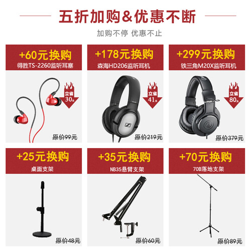 配置USB数字输出,能轻易连接到电脑手机工作,方便快捷有效。升级膜片设计,创意炫酷乐器人声配置,还原高真实度。