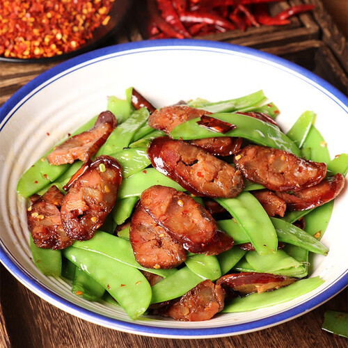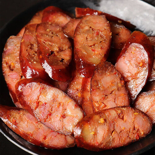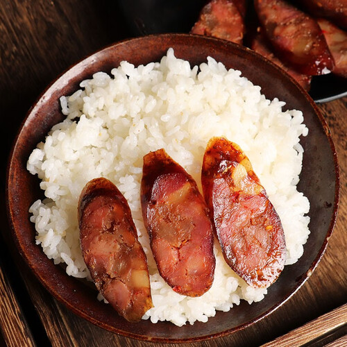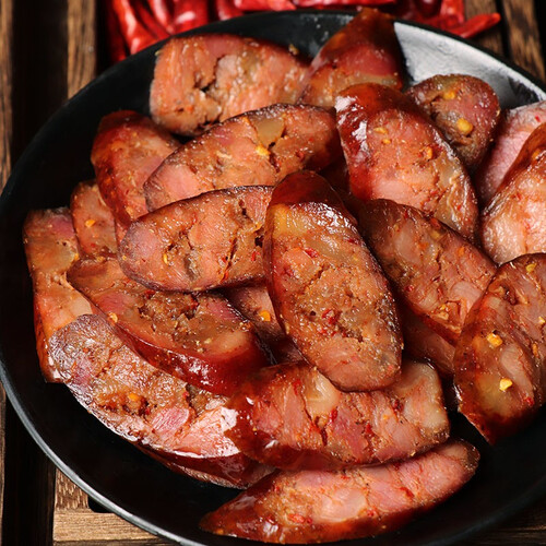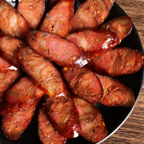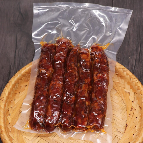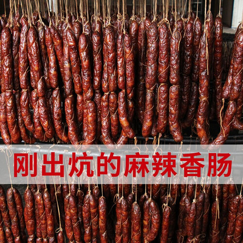 传统烟熏腊肠,手工制作。真空包装,锁住新鲜。农家晾晒,水分含量低,存储时间更长。