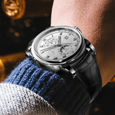 亲肤的牛皮表带,青春有活力,佩戴腕间更舒适。3点位的日历视窗和9点位的星期指示,为旅程读时带来方便。