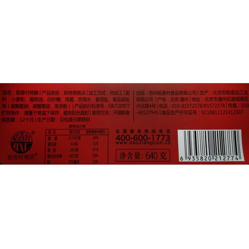 这款桃酥礼盒包装精美,送人很体面。里面的桃酥饼干是精选小麦粉、鸡蛋等制作的,色泽金黄,吃起来酥脆可口。