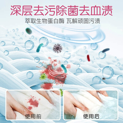 洗衣液蕴含多种植物提取物,具有清洁血渍和抑菌的功效,低泡易漂无残留,衣物穿着更加安心。