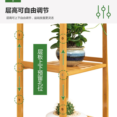 为了能够更好地适应不同高度的花瓶,花架的隔板能够手动进行调节位置,自由选择层高,更灵活的摆放盆栽。