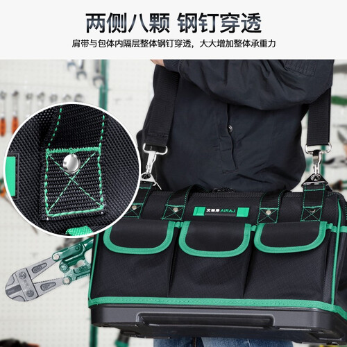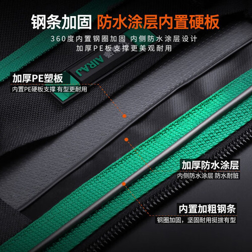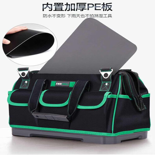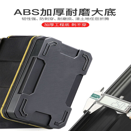 采用定制特粗纤维面料制作,表面防水设计,底部有防刺穿塑胶,非常耐磨耐用,适合工程人士外出携带,方便又耐用。