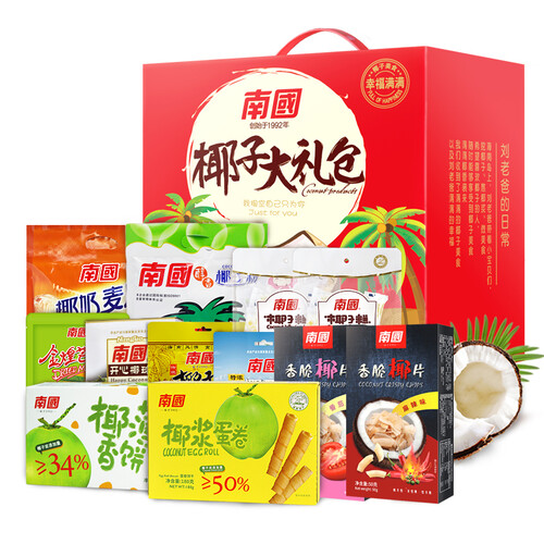 这款海南特产的椰子大礼包,具有满满的热带风味,内里包含多种不同口味的椰子制品小点心,一次满足多种味道享受。