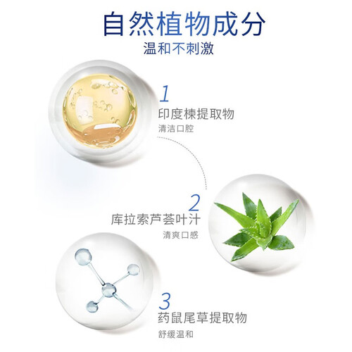 蕴含天然植物精粹,温和不刺激,配方安全有保障。维护口腔健康环境,保护口腔黏膜,平衡口腔酸碱度,防止蛀牙。
