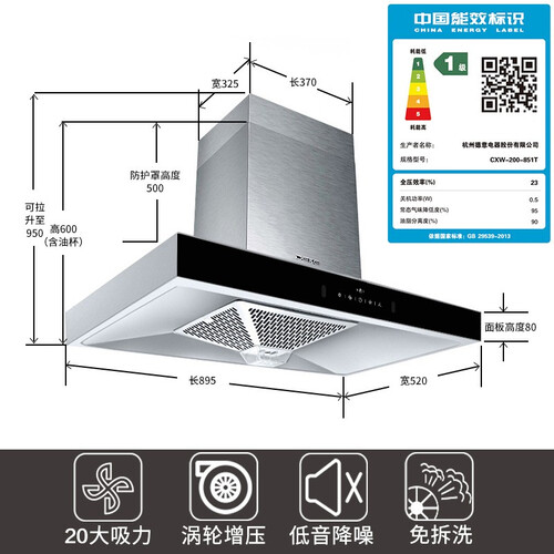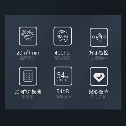 内置宽屏自适应电机,能够感知烟道压力并进行转速,提升排烟能力。搭配上免拆洗免换网,持久保持洁净。