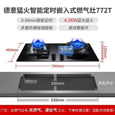 0-99min定时熄火,为你掌控菜肴火候的同时,更方便你临时外出。780mm宽面板,豪华大气,并且具有更好的承重力。