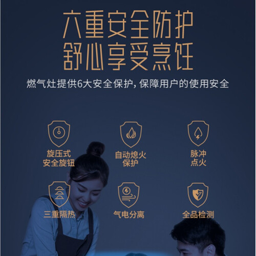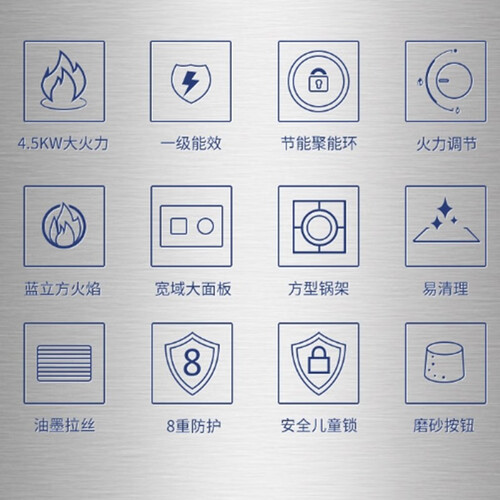 燃气灶释放出的是蓝芯火焰,热效率更高,可以让锅底受热更快。方形的锅架,可以很好的架住锅底,降低出现滑锅可能性。
