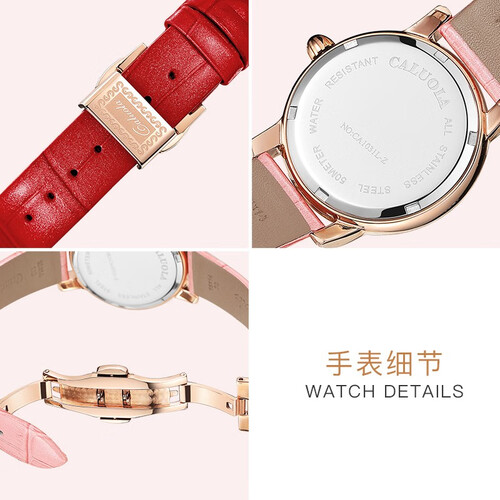柔韧耐折的小牛皮表带,表面纹理细腻,佩戴舒适柔软,不磨手腕。兼具时尚度和实用性的的蝴蝶表扣,摘戴不费力。