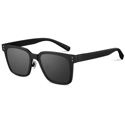 太阳镜上的铆钉装饰展现出潮流不羁的街头气质,彰显潮男本色。镜腿采用弹簧铰链,包容性强,舒适不夹头。