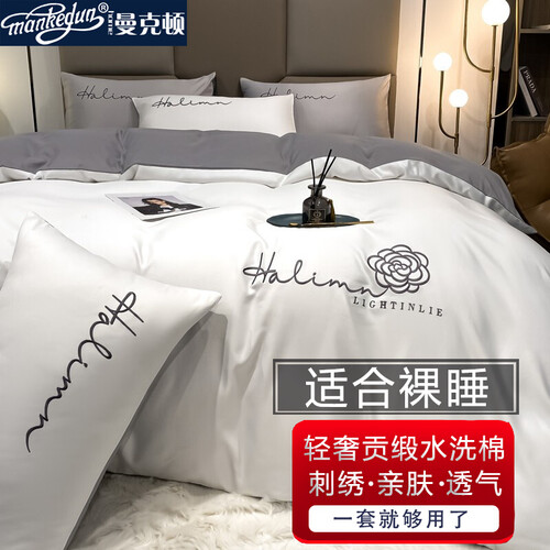 曼克顿 磨毛纽扣四件套