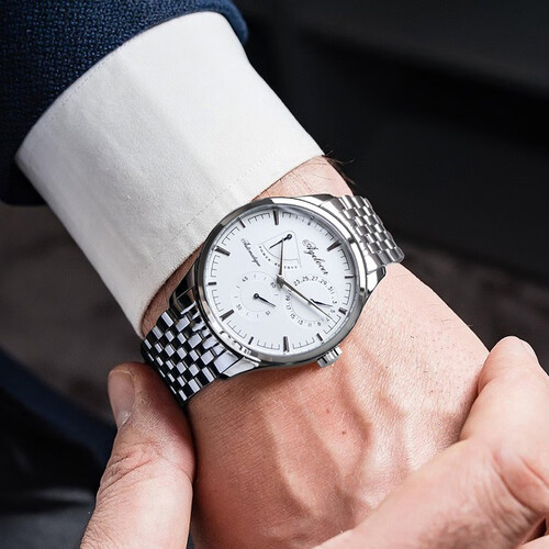 采用精美礼盒包装,雅致大气,高端时尚,送礼更加有档次。采用全景背透设计,可以欣赏精密机芯律动,感受机械魅力。