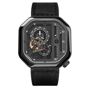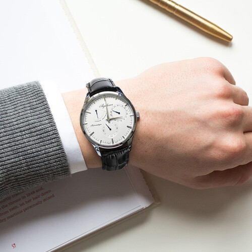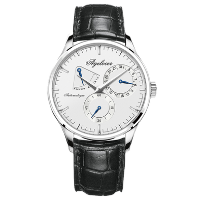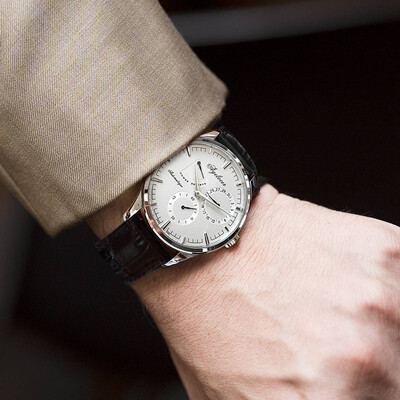 以长短参差镀银金属钉为缀饰,光洁明亮且层次感分明,用简约方式表达复杂的功能性。精钢表壳经过镜面抛光,质感出众耐磨防刮。