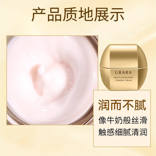 紧致下垂肌肤恢复弹嫩,滋养肌肤抚平干燥,肌肤充满年轻弹性。质地柔滑细腻易推开,营养丰富易吸收,肌肤呈现紧致光滑。