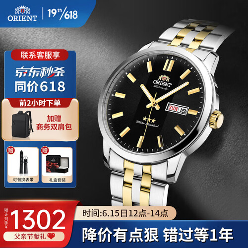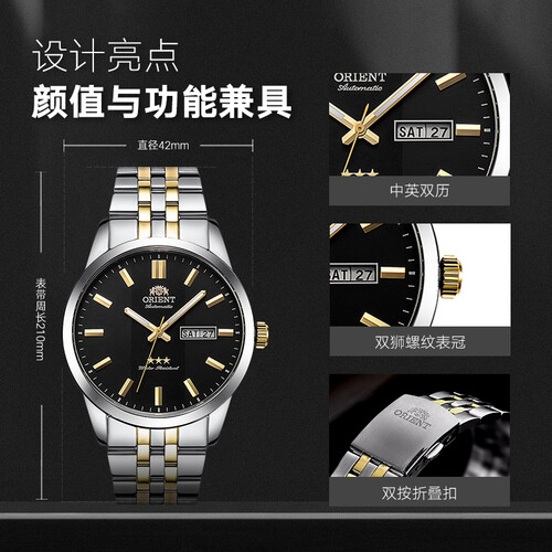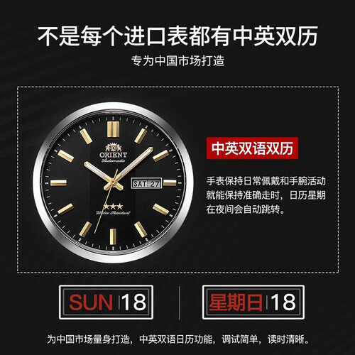 手表搭载自动机械机芯,具有稳定的性能,走时准确。矿物强化玻璃材质镜面,耐磨防刮花,日常磕碰不留痕迹。