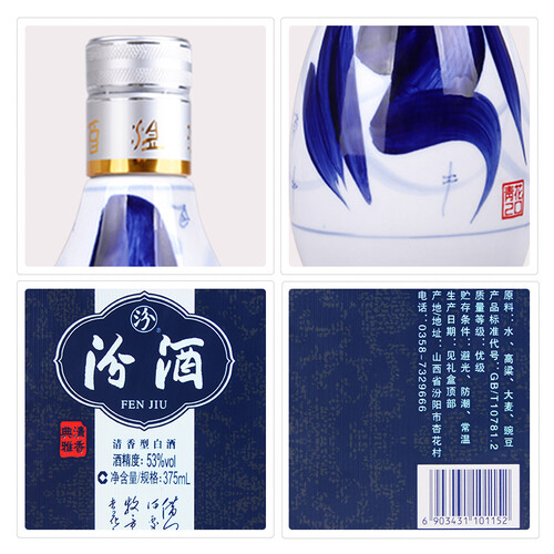 包装采用传统的青花瓷风格,瓶盖银色金色相得益彰,简单大气,采用传统清蒸发酵发,开瓶酒香四溢,口感清香典雅。