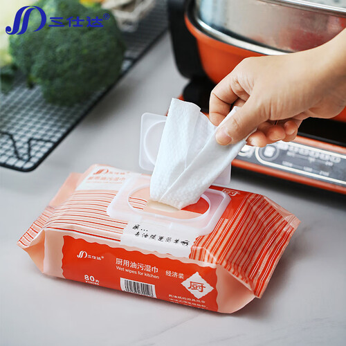 弱碱性的厨房湿纸巾,可以有效分解油污,但是不会刺激双手,超级温和。含水量适中,足够擦拭油污,不易滋生细菌。