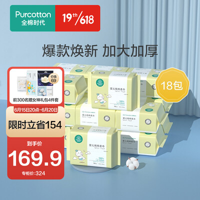 全棉时代棉柔巾采用全棉水刺无纺布专利工艺,触感更加柔软细腻,擦拭时不易摩擦宝宝的肌肤,对肌肤更温和。