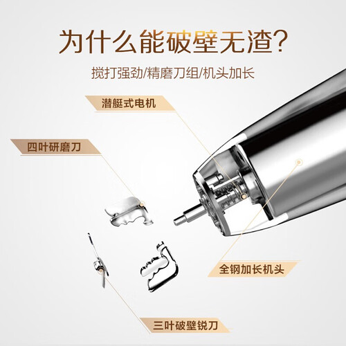 全钢材质机头设计,提供强劲动力,打磨更加透彻。搭载高转速马达,帮助快速做豆浆,享用美味无需久等。