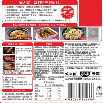 严选16味食材,传承5道炒制工艺制作的火锅底料,它采用鲜油脂取火提炼工艺,鲜温厚醇香,辣味浓郁,让人回味香醇。