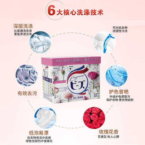 其内含柔顺成分,令洗净后的衣物柔顺清爽且干净。更有玫瑰花香,能渗透进衣物纤维,持续保持清新玫瑰香味。