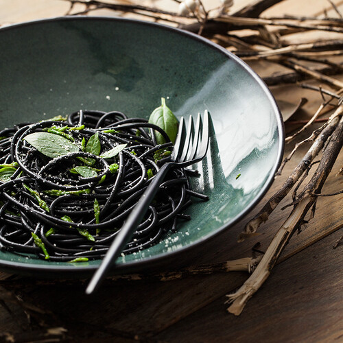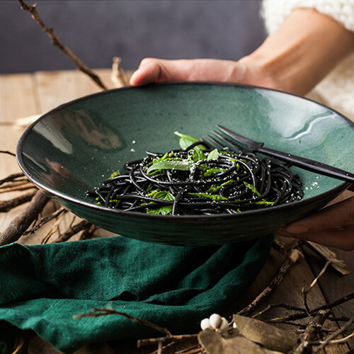 墨绿色浅口设计,色泽清雅,功能多用,釉面光滑明亮,边缘描边细节处理,产生不一样的视觉体验。
