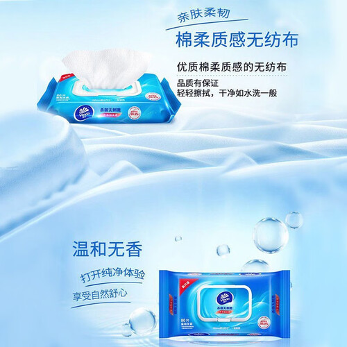 选用温和无香配方打造,方便去除多种细菌,贴心为家人营造健康的生活环境。搭配棉柔无纺布,柔韧舒适洁净生活。