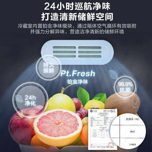 铂金净味的功能,有效吸附并分解各种有害异味,还原食材本味,吃着健康又安心。搭载双重制冷系统,营养不流失。