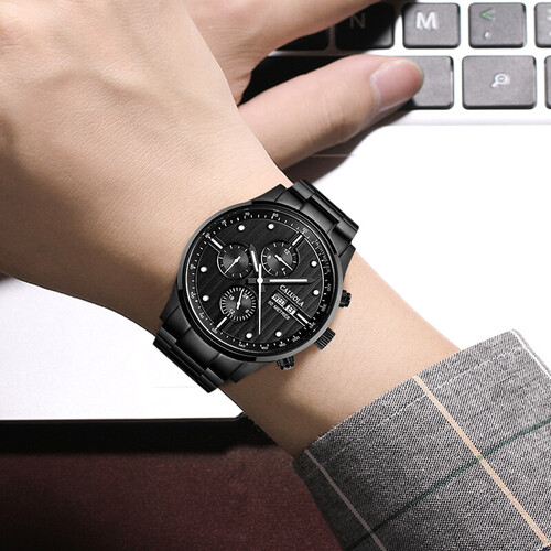 竖条纹设计,具有层次美感,尽显男性阳刚魅力。采用纳米粒子IP电镀工艺,不易褪色更耐用。三眼设计,展现慢与快节奏的魅力。