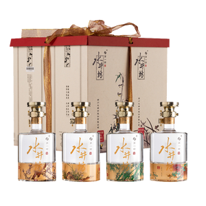 外盒采用水墨设计,配以瓶身的梅兰竹菊的设计,典雅大气,更加精致美观,选用五谷酿造而成,其口感细腻顺滑。
