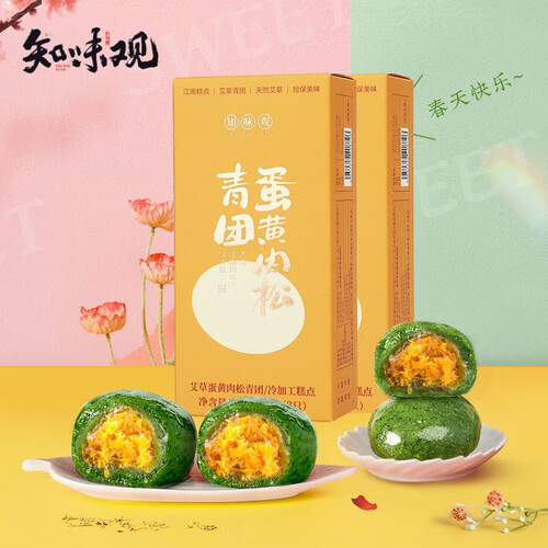 知味观 蛋黄肉松麻芯艾草青团子
