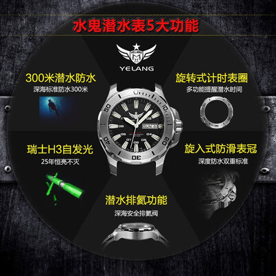 内置进口机芯,拥有强劲的动力,走时稳定续航持久。搭配300米防水,适宜游泳、潜水佩戴,在水下也可清晰读时。