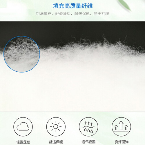 采用负离子纤维,清新空气,带来愉悦自然的睡眠享受。配合高支高密面料,防止钻绒,柔软贴合,清爽透气。