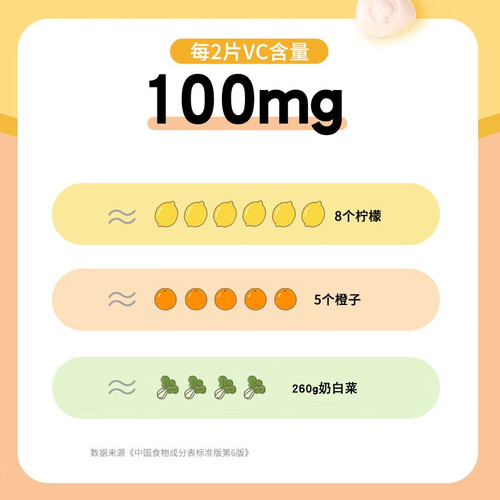 这款鲜橙味维生素C含片,口感酸酸甜甜,香气四溢,带来嗅觉与味蕾的双重享受,而且方便携带,让您可随时补充所需。