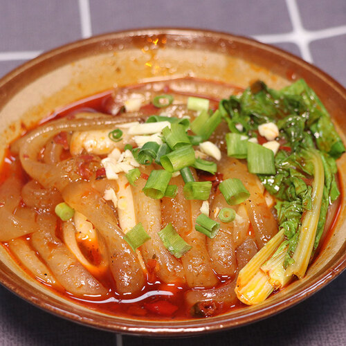 选用马铃薯木番薯淀粉,人工制作,品质安全更放心;煮后有弹性,口感弹滑爽口;多种食用方式,凉拌热炒火锅皆可。