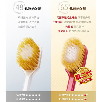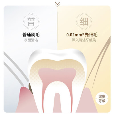 可根据自己的实际情况选择刷毛硬度与排列,三重不同柔软度的刷毛轻柔包裹牙齿按摩牙龈;刷头加宽,增大接触面积,清洁更到位。