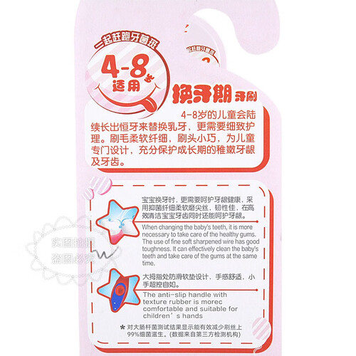 大拇指处有着防滑软垫设计,带来舒适手感,小手更可自如操作。为孩童设计的小巧刷头,可轻易地进入口腔里面。