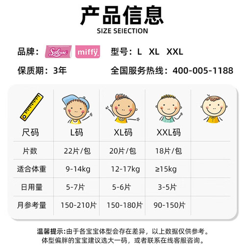 进口的高分子吸收材料,牢牢锁住尿液,安睡一整晚。采用亲肤的材质,触感如同云朵一般柔软,呵护宝宝细嫩的肌肤。