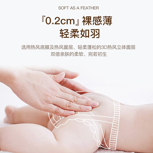 采用热风底膜和热风面层设计,令肌肤自由呼吸,结合3D立体压纹,吸收更快速。